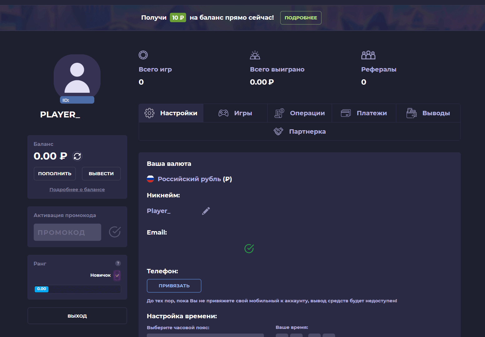 Если вы впервые на сайте, активируйте промокод UP-X и сделайте свой первый депозит. После пополнения баланса, вам будет доступен весь функционал сайта. Научиться играть в основные режимы можно как самостоятельно, так и по инструкциям в разделе “Помощь”. Все выигранные средства можно вывести, соблюдая правила сайта. Ежедневно мы выплачиваем победителям более 100 миллионов рублей, в числе этих счастливчиков можете оказаться и вы!